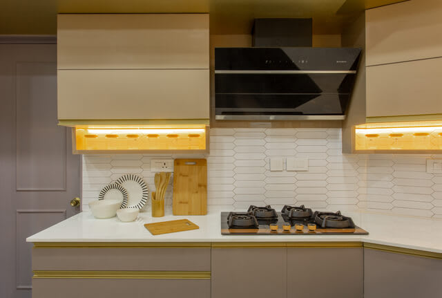 The client boasts a huge collection of designer shoes and bags, she wanted ample space to store them. And finally, she desired a spacious kitchen to compliment her love for cooking.